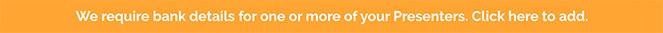 If you have previously entered your default bank details select the “Presenters” Tab on the left panel or Click Here. From here you can specify bank details per “Presenter” or “Brand” that you operate.
