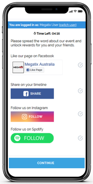 Optionally, customers can also be incentivised to share your event and like your pages by rewarding them with a discount if they perform your requested actions.