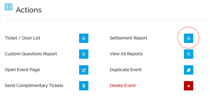 - Select the Blue action button to download the Settlement Report