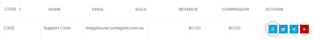 - Once the Affiliate Link has been created select the “Sales” action button next to the relevant link