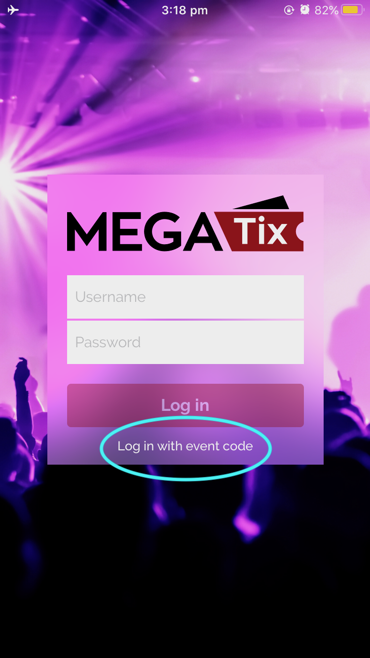 There are 2 ways to log in to the Megatix app, either with your Dashboard account details (email and password) or with a specific Event Code.