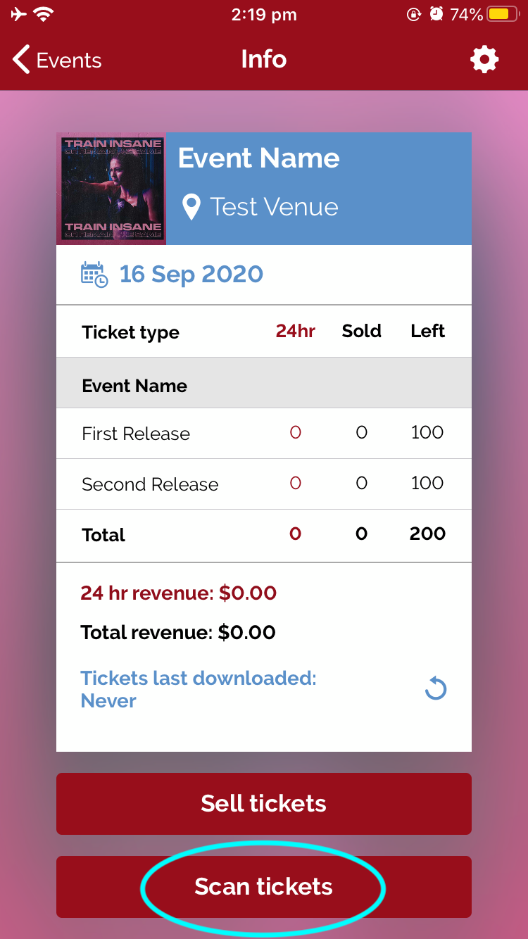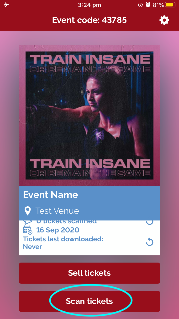 - Select “Scan tickets” on your chosen event