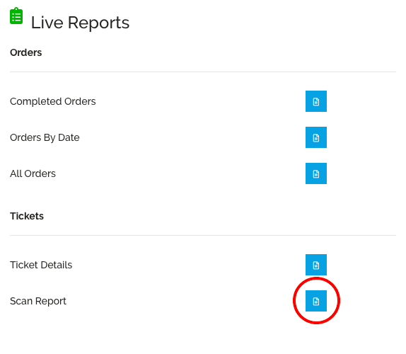 - Select the "Refresh" icon next the header "Tickets Scanned".